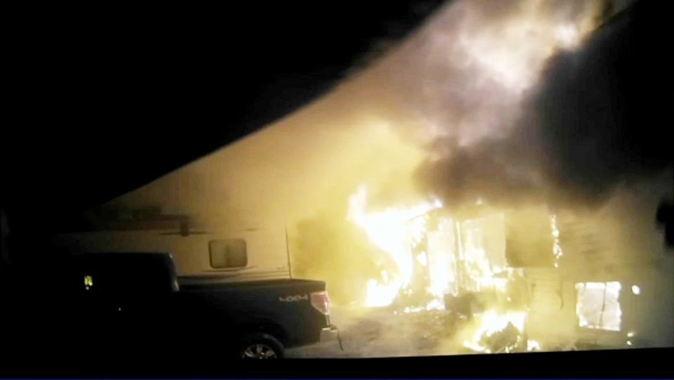 A 68-year-old woman was able to get out of the house on her own. She was taken to a hospital to be checked out.